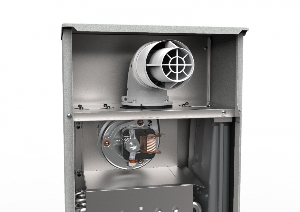 В котлах имеется горелка, вентилятор для принудительного выброса
